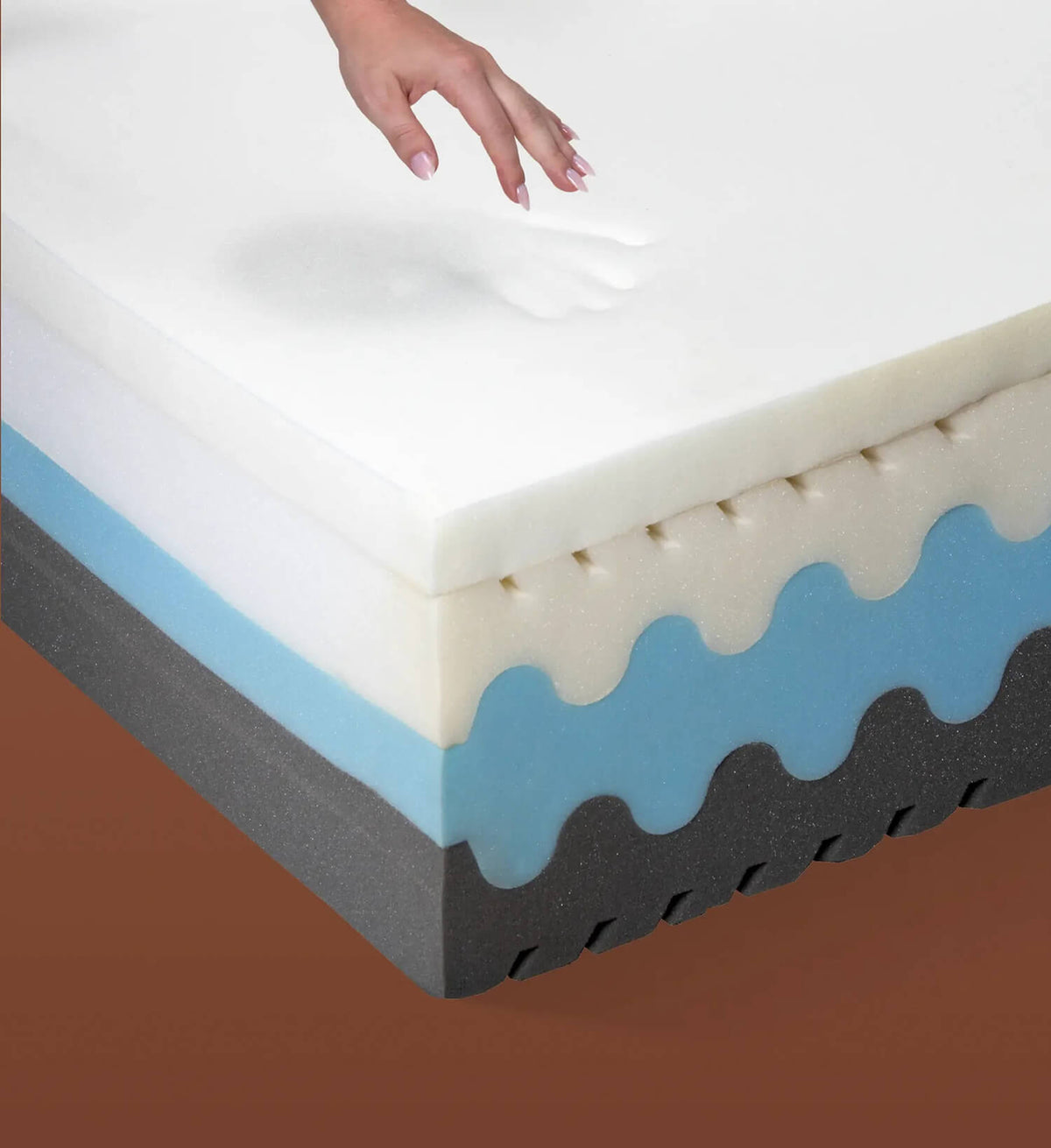 Sous sa surface accueillante, Aurore révèle une architecture interne pensée pour durer. Plusieurs couches de mousse Haute Résilience assurent un soutien ferme en profondeur, sans rigidité.
