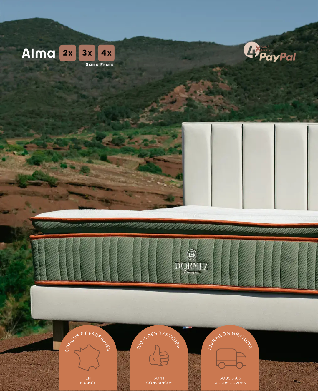 150 nuits d’essai, garantie 15 ans, livraison offerte