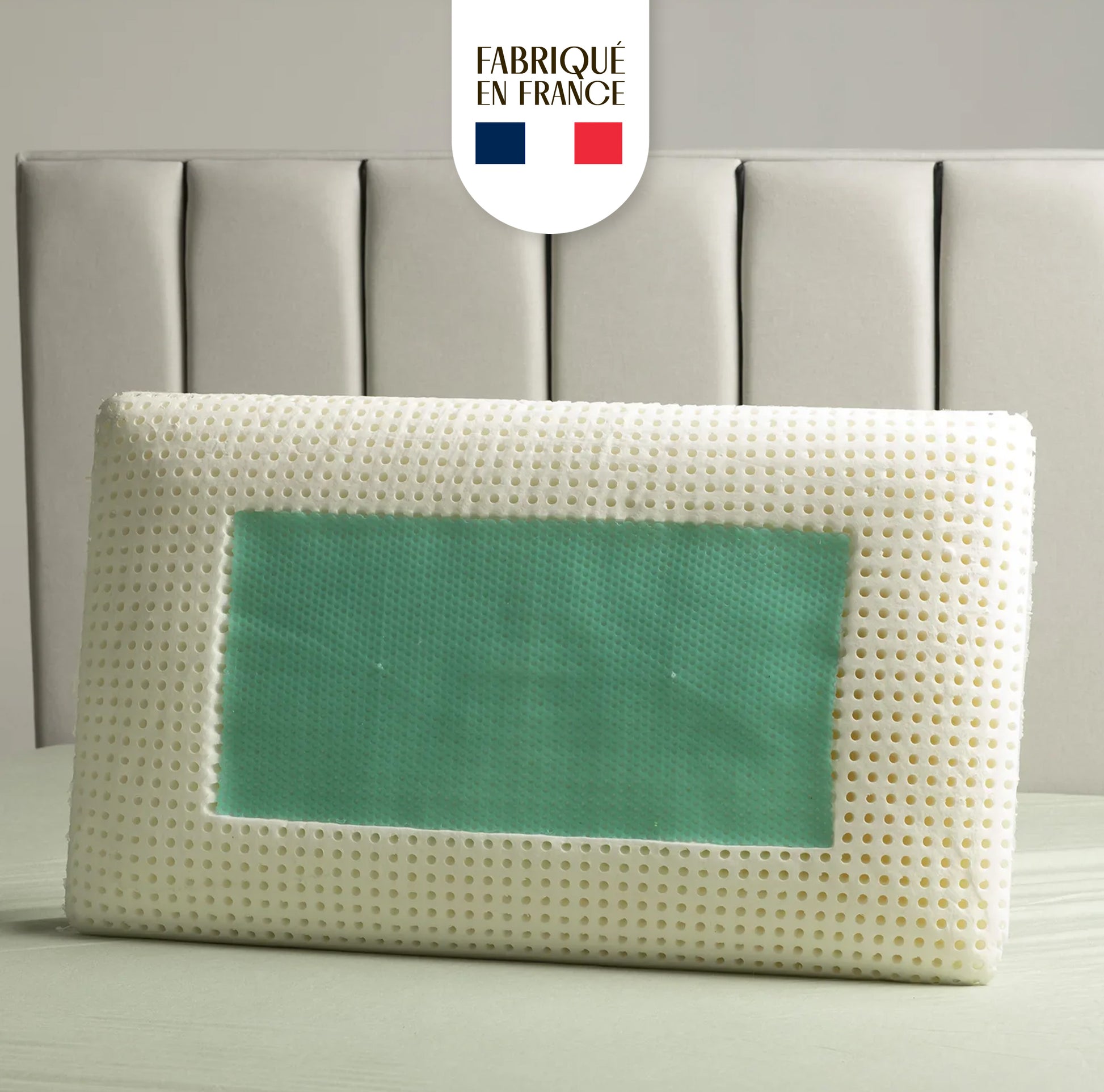 Oreiller Gel RafraîchissantFabriqué en France • Effet fraîcheur • Thermorégulation • Soutien cervical ergonomique • Mousse à Mémoire de forme